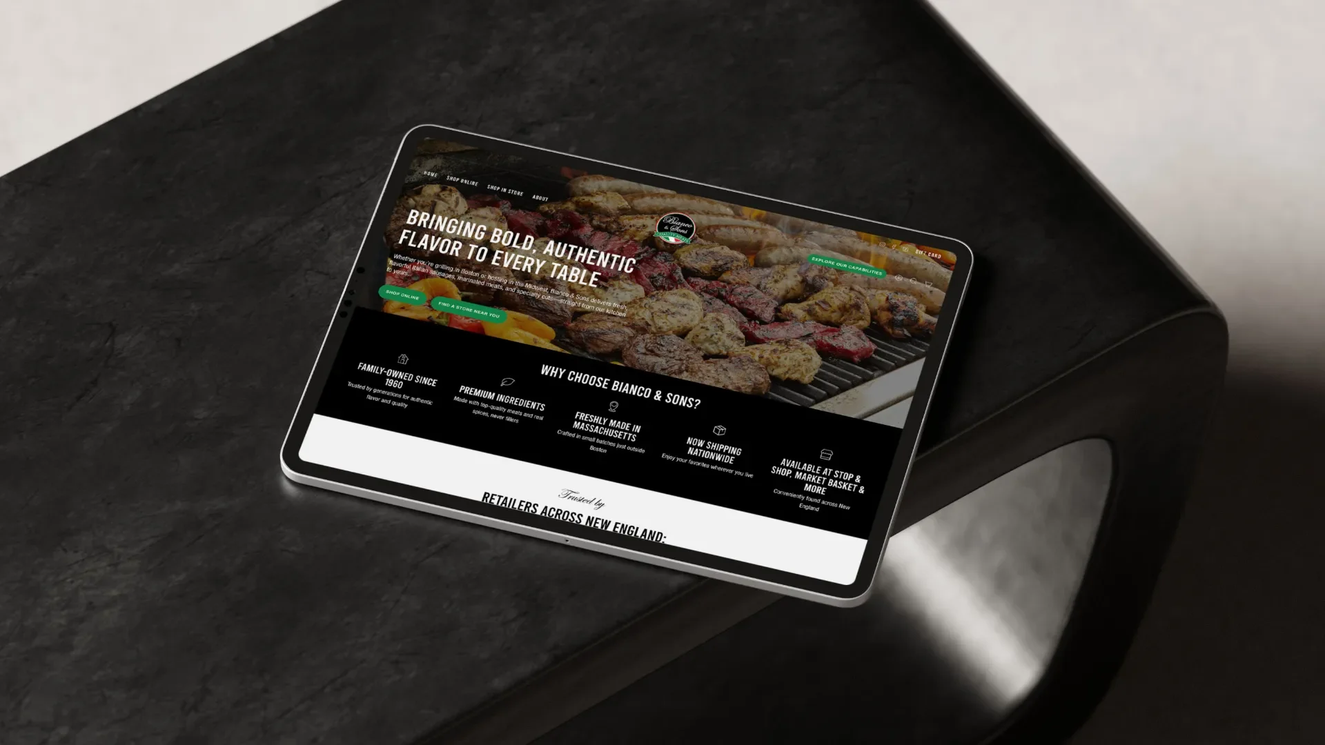 Creating a new digital home for Bianco and Sons began with understanding who they are at their core. Their brand is bold and confident, rooted in generations of quality. Their products are memorable. Their customers are loyal and enthusiastic. The website needed to echo this personality and present the brand in a way that felt both modern and timeless.