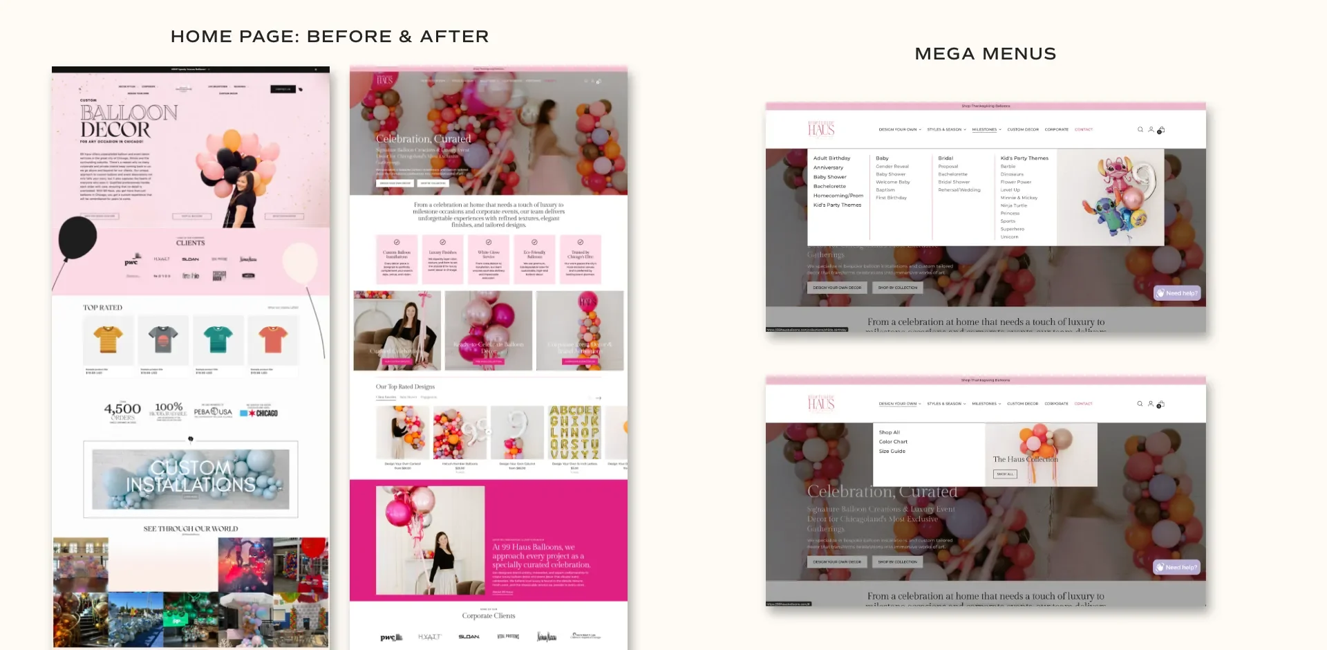 Before coming to WildHive, the brand’s online presence no longer matched their vision or their service quality. The site did not reflect the level of professionalism their clients experienced in person. Navigation felt unclear and the user journey was not aligned with how customers naturally shop for balloon decor.