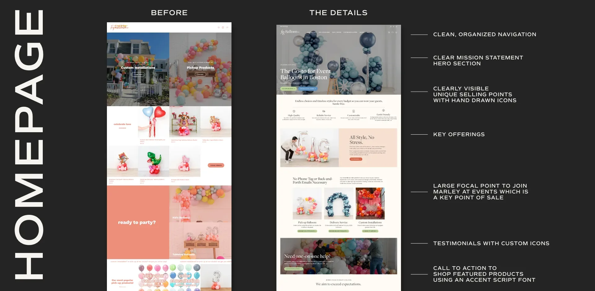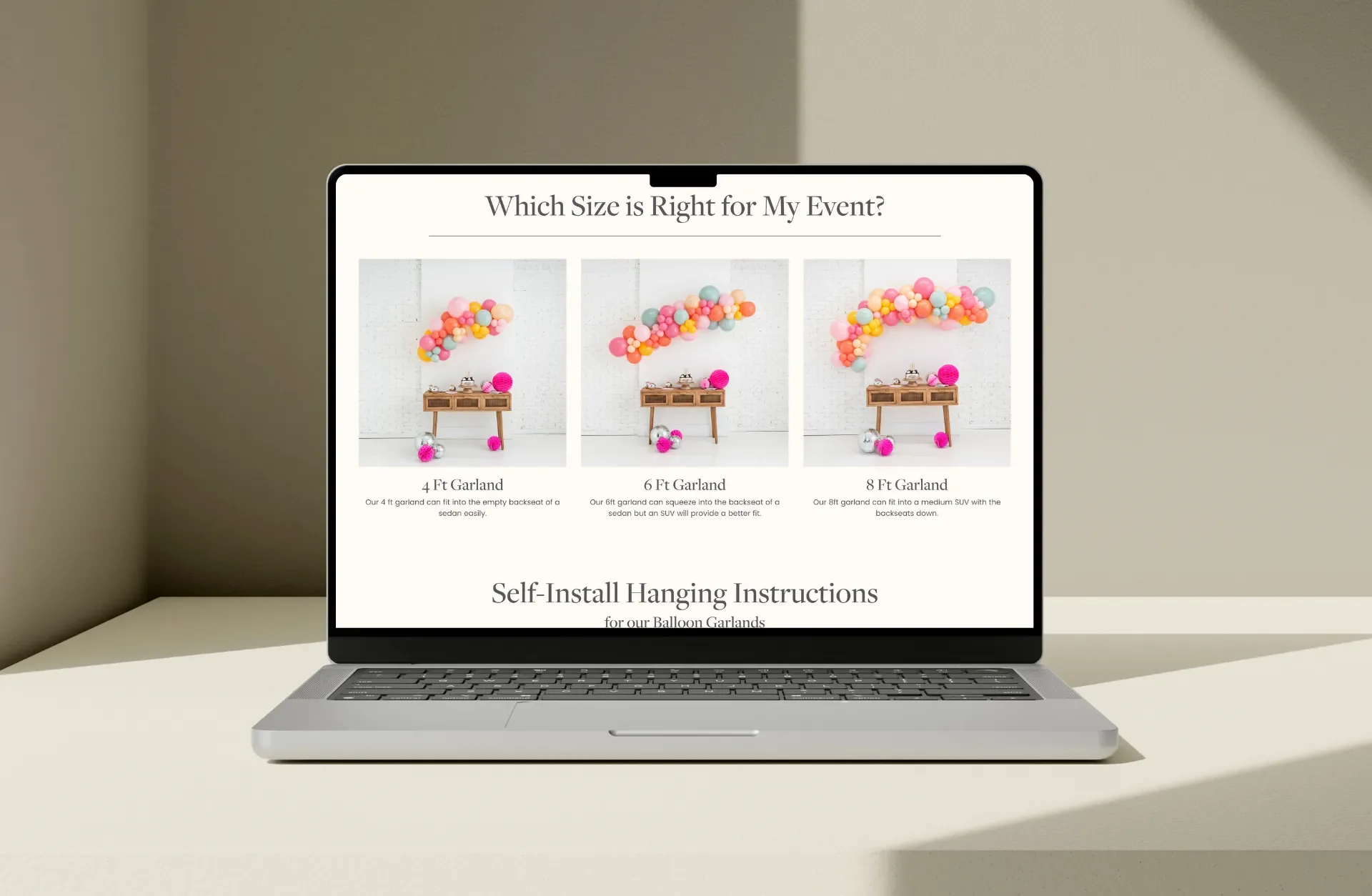 Every decision was made with clarity in mind. Balloon styling is visual, but customers also need reassurance, pricing structure clarity, and guidance on what to book.