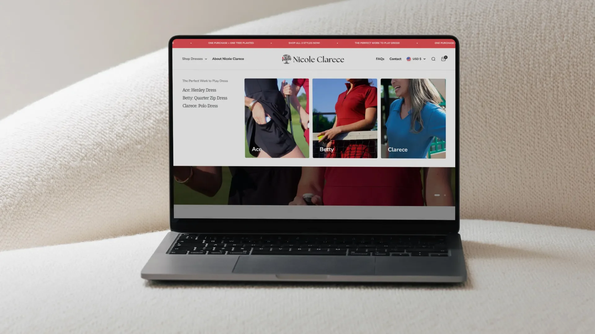 How Nicole Clarece launched a polished, performance driven Shopify website that finally matched the quality of her elevated dresses