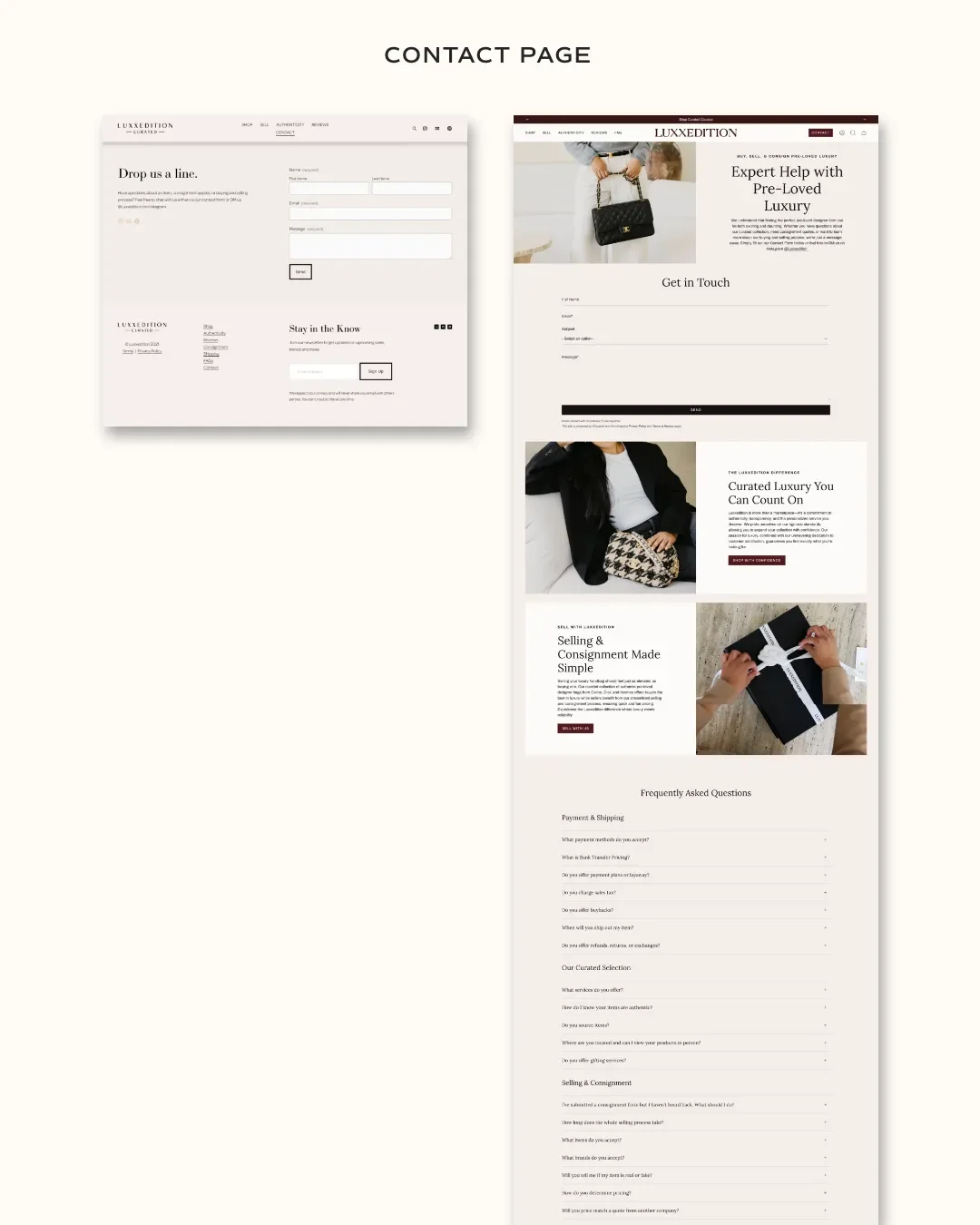 ✔️ Design and development for 8 core pages on Shopify based on selected design style and theme. This includes the Homepage, About, FAQs, 404, Contact, Checkout, Collection, & Product page.